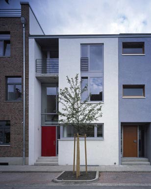 Das Stadthaus 47 besetzt eine der 16 Parzellen in der Friedrichstraße, die im Zuge der Sanierung desBraunschweiger Bahnhofsviertels zur Bebauung freigegeben wurden. Es knüpft an die Tradition der verdichteten Wohnform in diesem Quartier an. Das weiß verputzte schlicht gestaltete Pultdachhaus wirkt im Vergleich zu den Nachbargebäuden sehr schmal durch die Gliederung von Innenraum und Fassade in Wohnbereich und Nutzbereich mit Flur und dahinter liegenden Bädern bzw. Küche. Während der Wohn-/Essbereich im Erdgeschoss lediglich durch versetzte Ebenen zoniert ist, lässt die Einteilung der beiden Obergeschosse in jeweils zwei große Zimmer und ein Bad eine flexible Nutzung zu.
